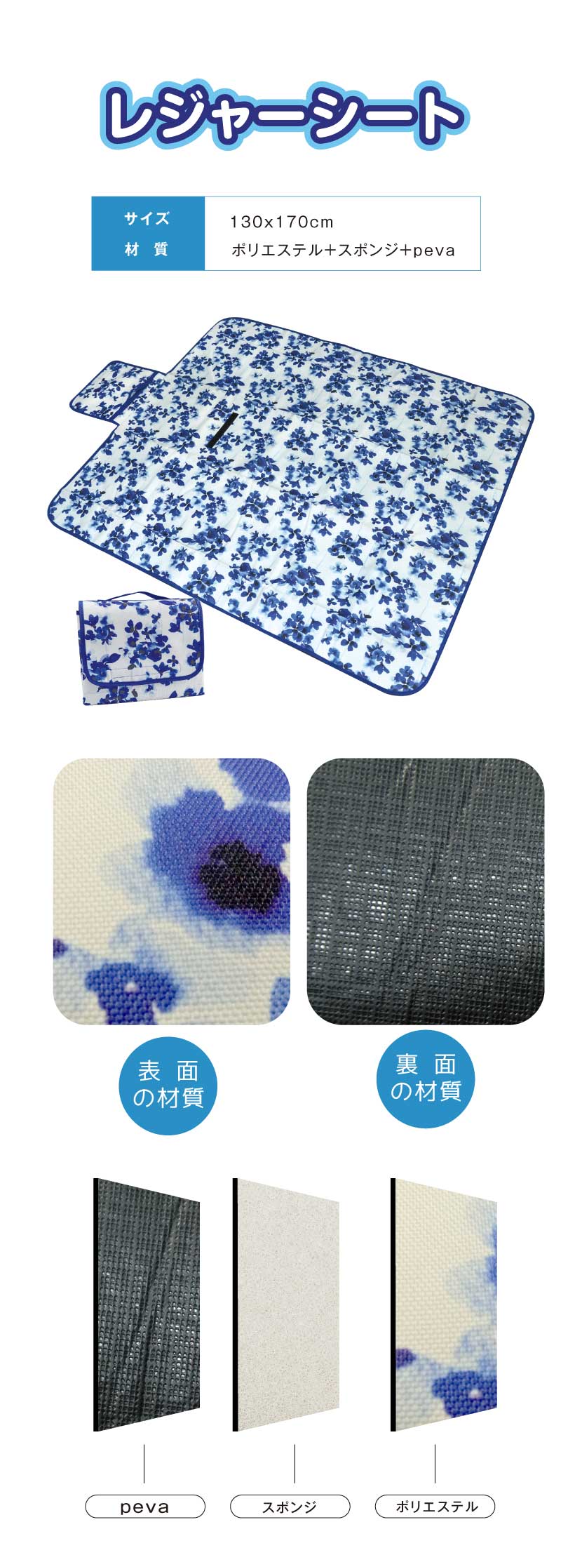 • 材質:100%ポリエステル+peva