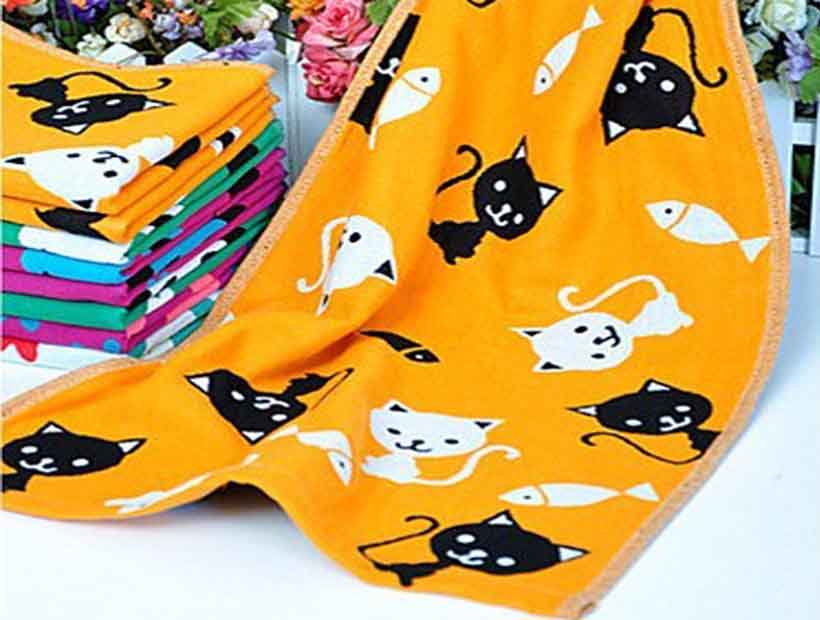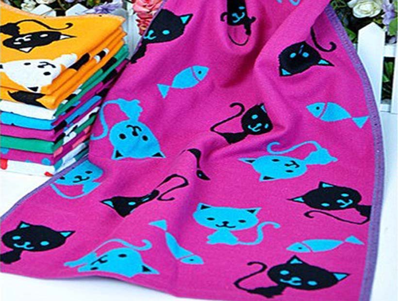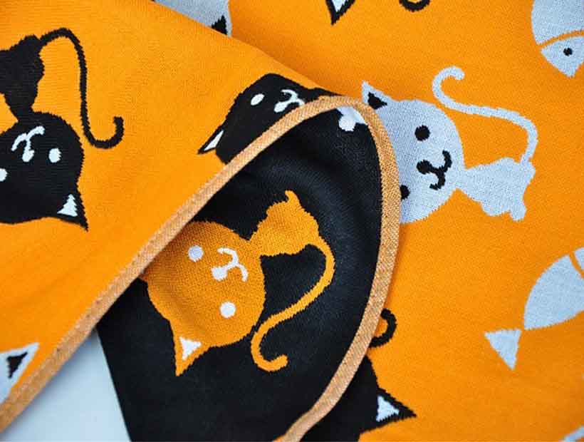 | M材質:100%綿製 | デザイン:猫と魚 | スタイル:ジャガードタオル |