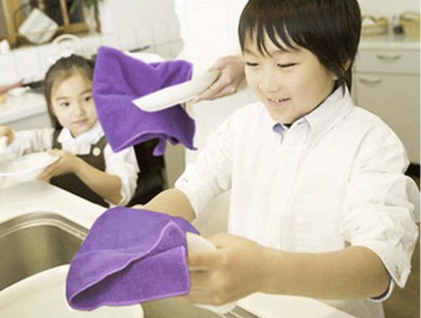 ●ハイテクの天然毛細管吸水原理を利用し、その極細繊維の繊度は一般的なタオルの1/5、髪の毛の1/100です。